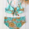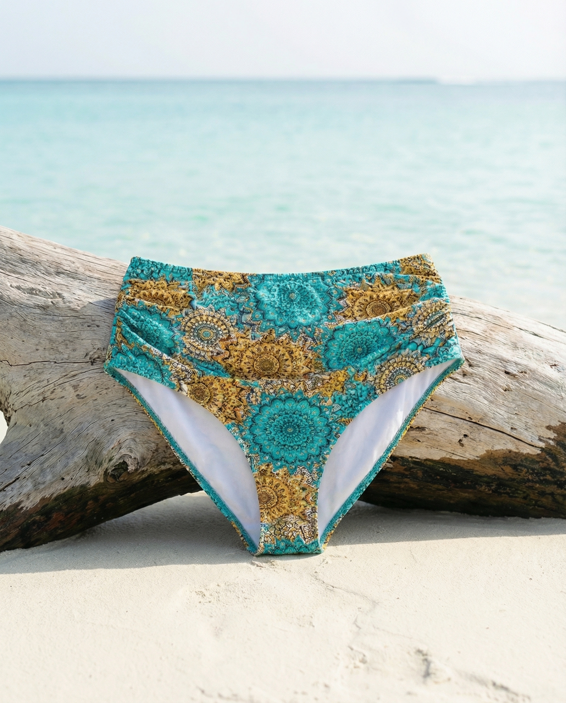 Forme bonnet D+ sans coque, avec armature, bretelles réglables et dos à nœud. Une culotte haute avec les cotés réglables. Ce produit est un incontournable pour les professionnels du maillot de bain.
